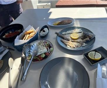 There are numerous things to do onboard - take delight in the catamaran ride and the amazing views of Santorini from the sea, sunbathe, and enjoy the meal the staff will prepare for you, or just relax with your drink on board!