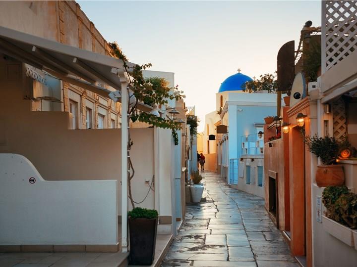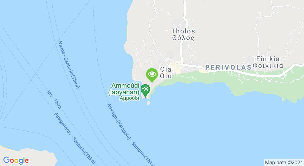 Oia is a beautiful traditional village that is built on the top of a cliff, on the famous Caldera of the island, with an amazing view of the Volcano of Santorini. There, while wandering its small paved paths, visitors meet charming white-washed cave houses, the unique Blue Dome churches, traditional restaurants built right on the edge of the cliff, and small shops, all combined with each other and creating a marvelous idyllic scenery.