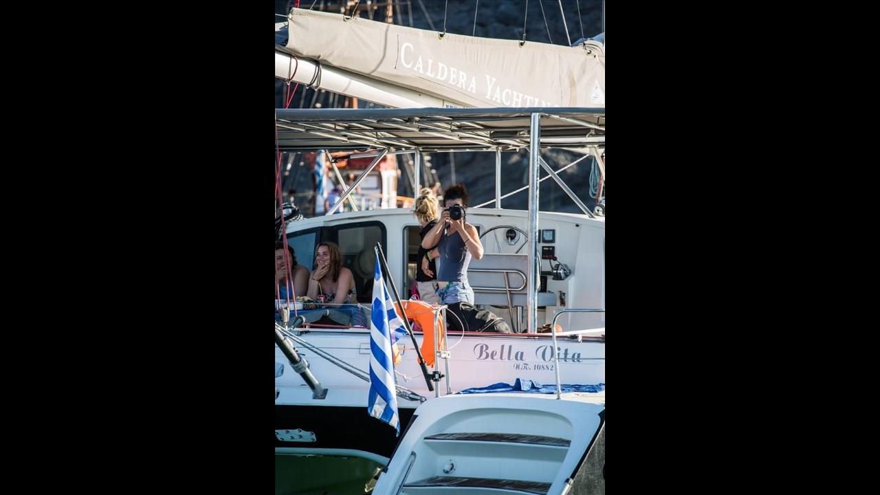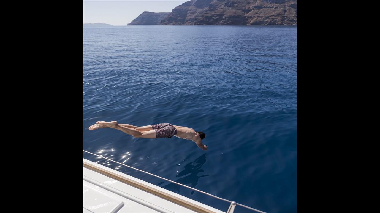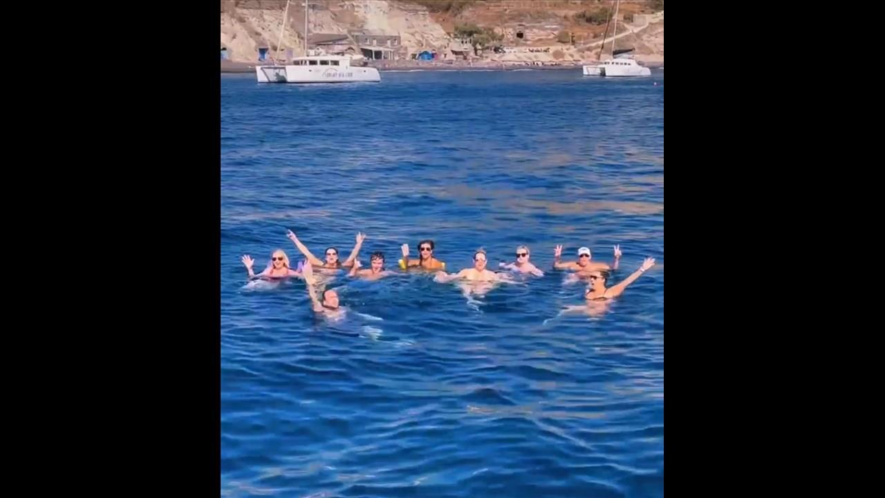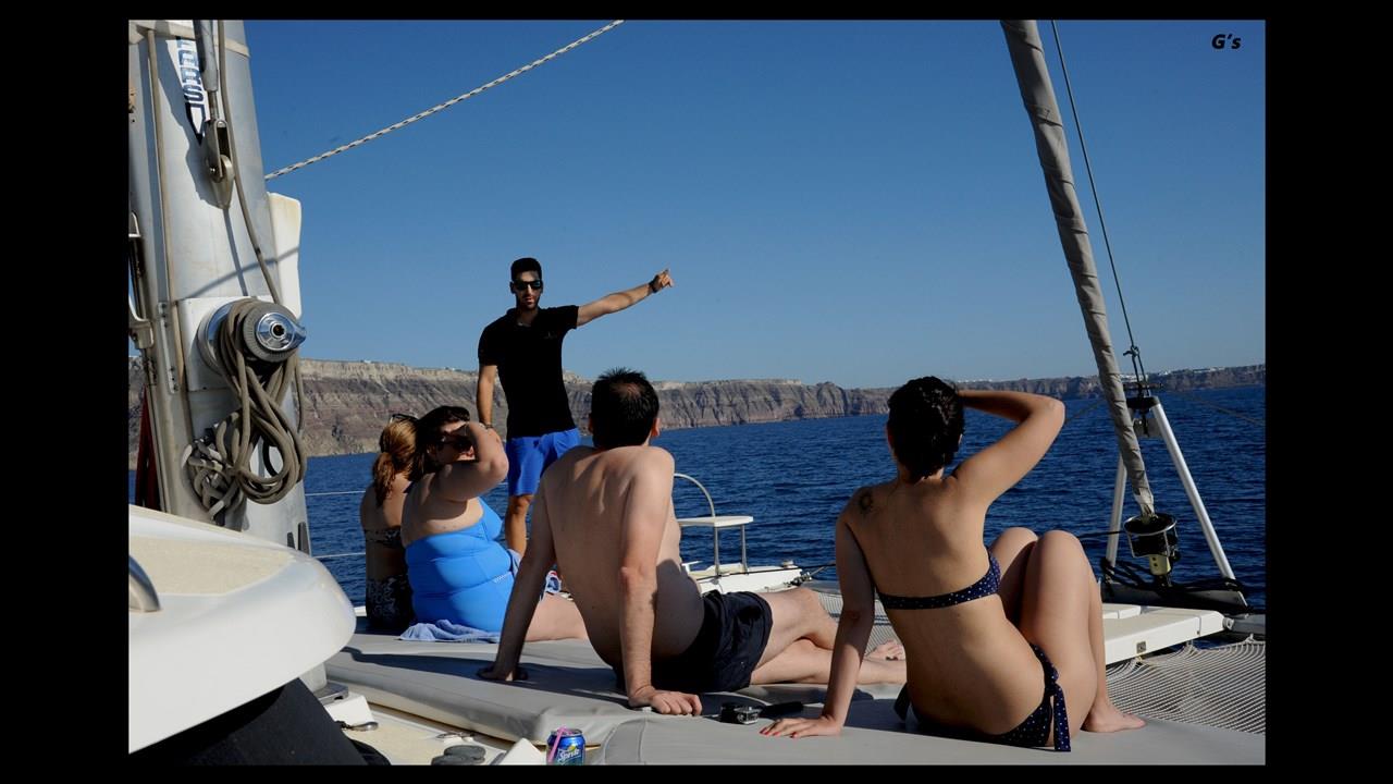 There are numerous things to do onboard - take delight in the catamaran ride and the amazing views of Santorini from the sea, sunbathe, and enjoy the meal the staff will prepare for you, or just relax with your drink on board!