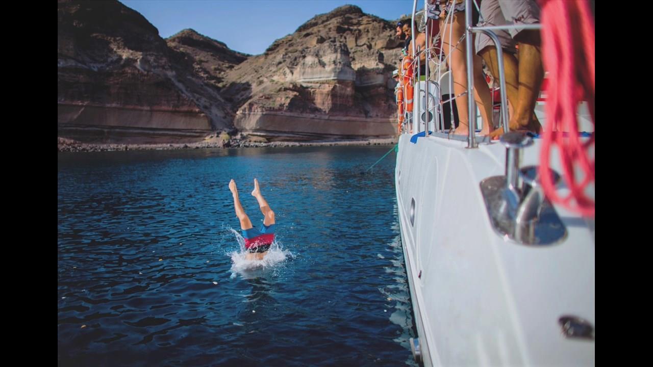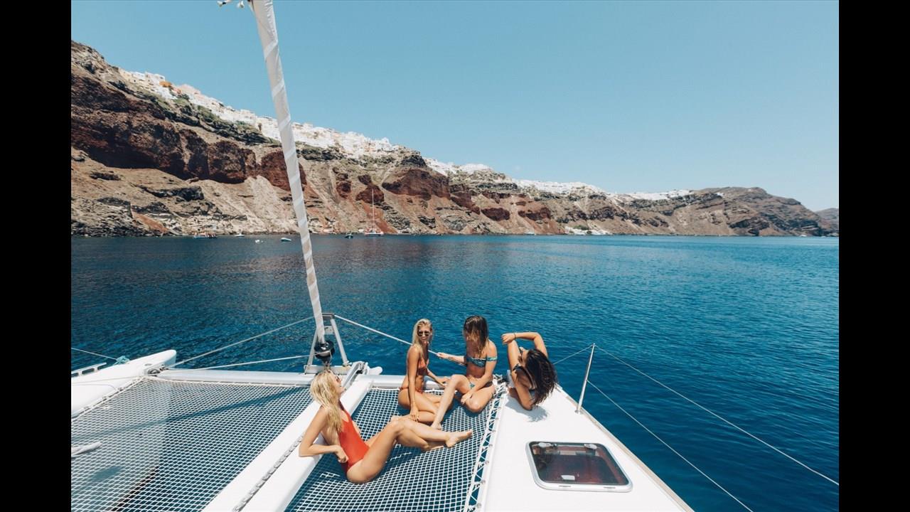 Imagine yourself sailing in a catamaran on a sunny morning or a calm afternoon, with the feeling of the sun on your face and the wind in your hair! Then, come live the experience on this cruise around the famous caldera of Santorini!