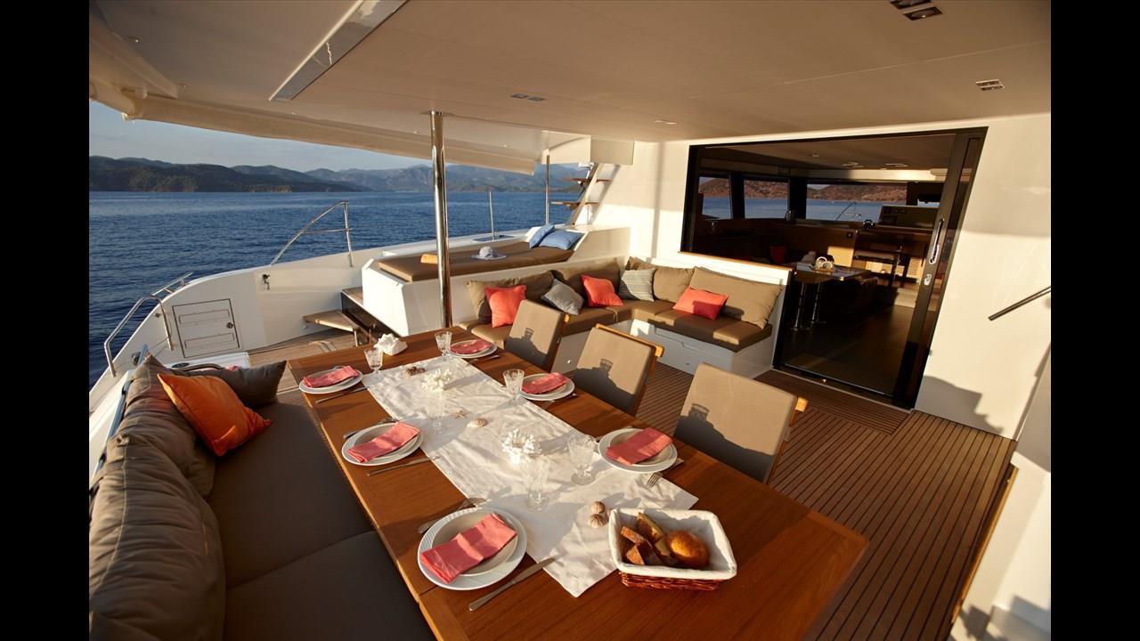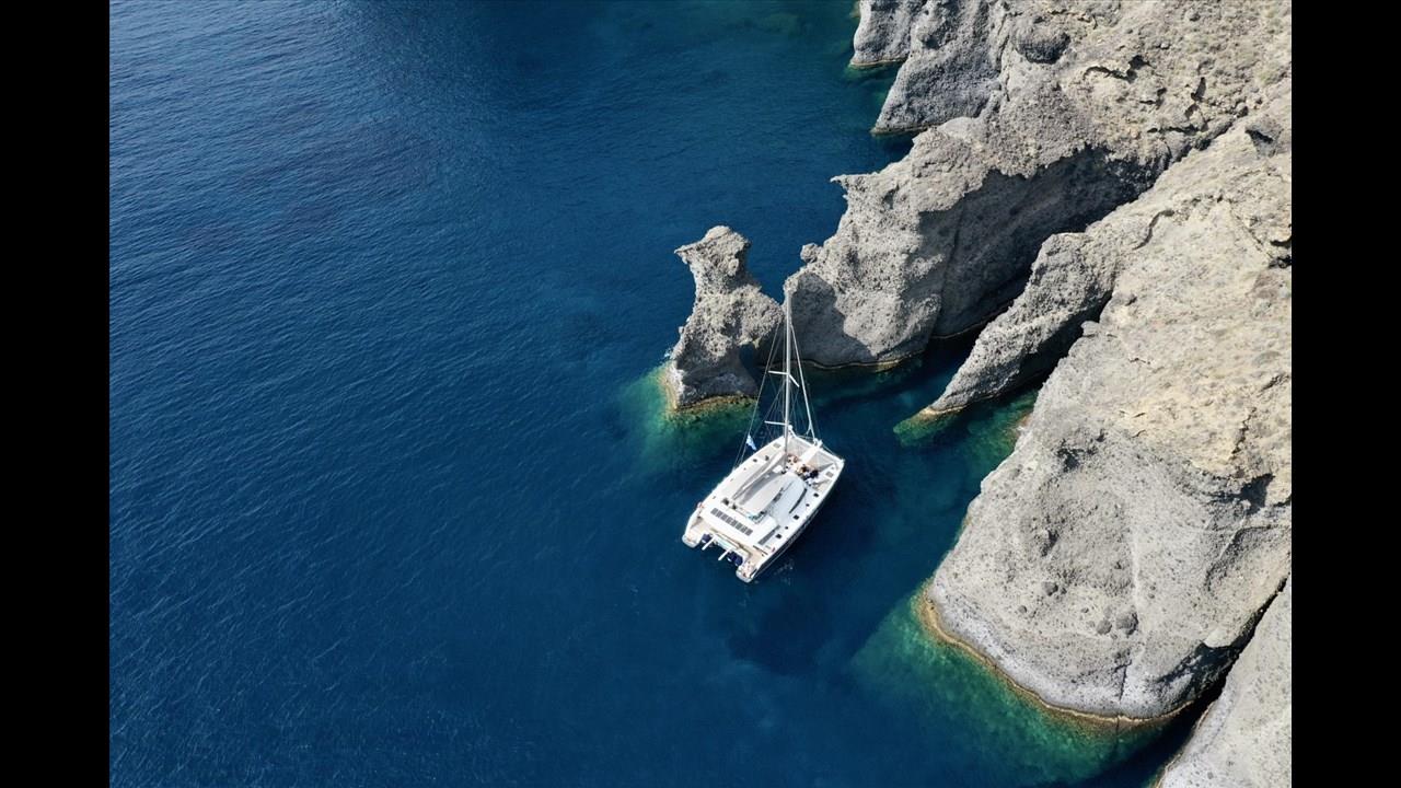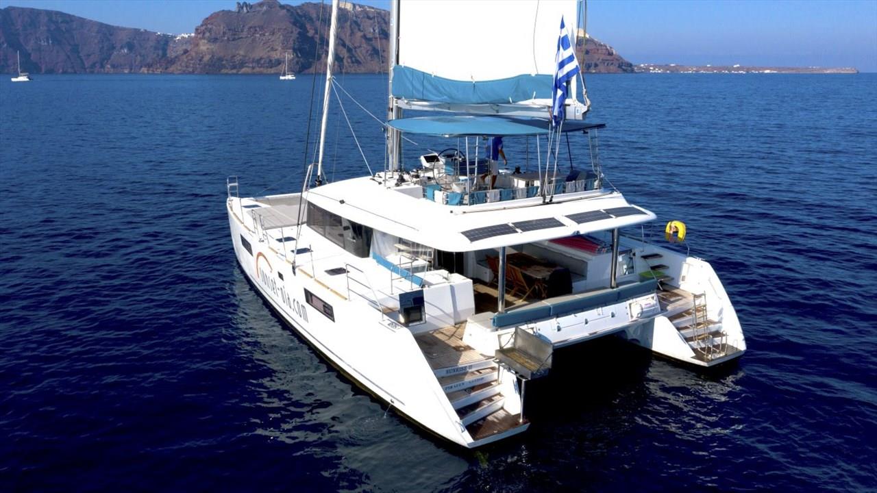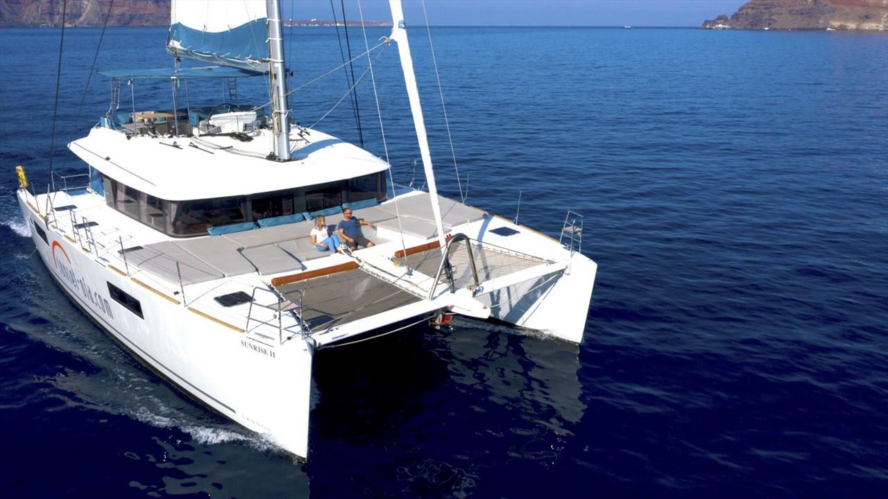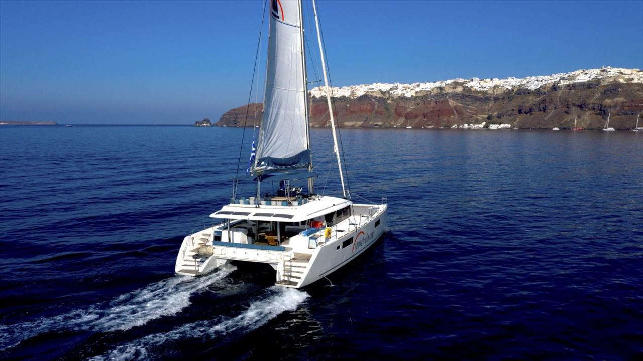 There are numerous things to do onboard - take delight in the catamaran ride and the amazing views of Santorini from the sea, sunbathe, and enjoy the meal the staff will prepare for you, or just relax with your drink on board!