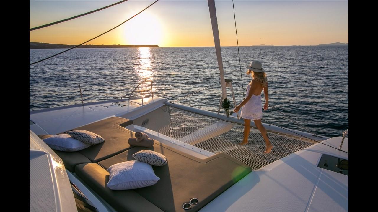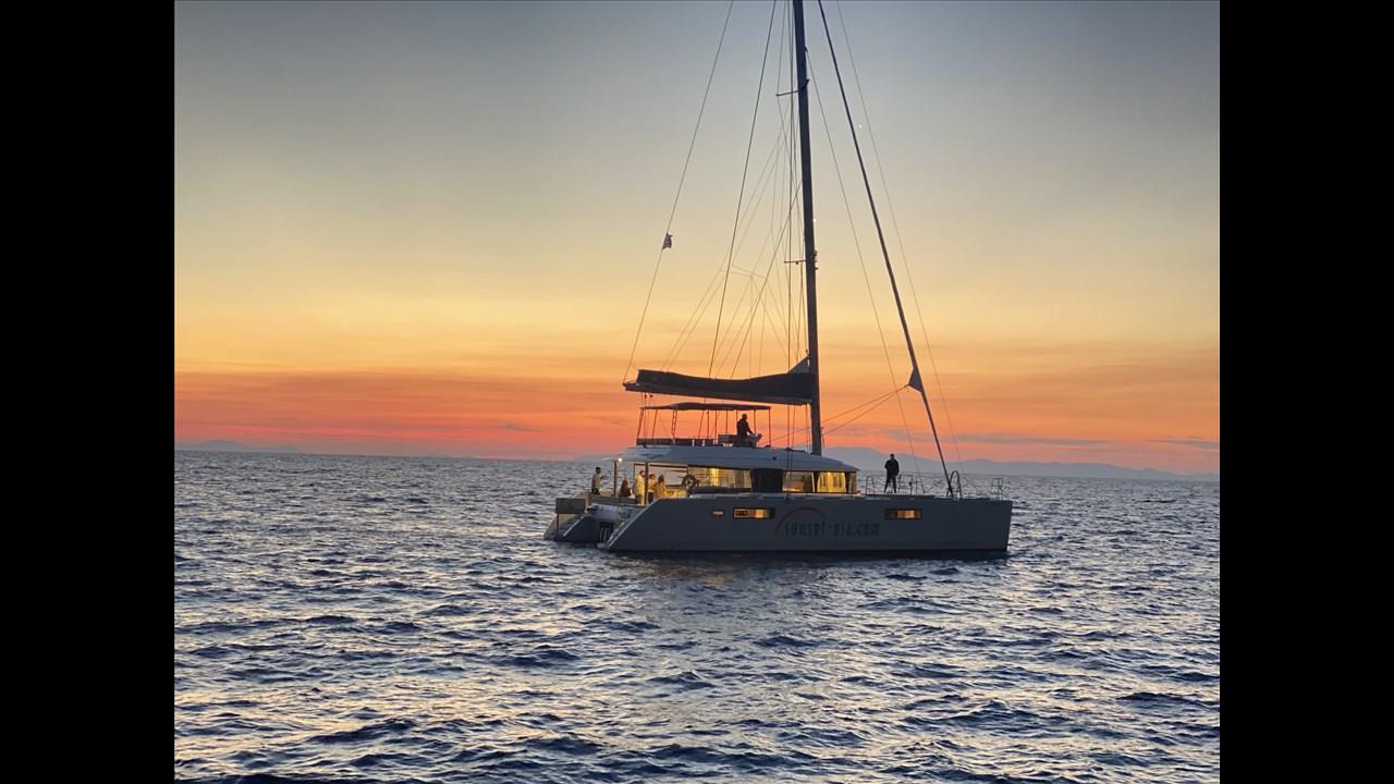 Both cruise choices ensure a unique and lasting adventure in idyllic surroundings! Opting for the day cruise provides an excellent opportunity to indulge in swimming in the azure waters of the Aegean Sea and basking under the warm Mediterranean sun. Conversely, the sunset cruise caters to those seeking a more intimate and memorable moment, as it offers the unparalleled opportunity to witness the breathtaking sunset while enjoying the comfort of this opulent catamaran.