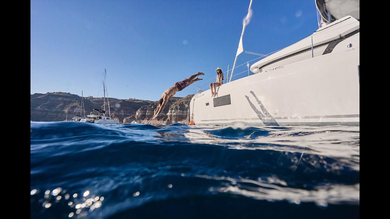 There are numerous things to do onboard - take delight in the catamaran ride and the amazing views of Santorini from the sea, sunbathe, and enjoy the meal the staff will prepare for you, or just relax with your drink on board!