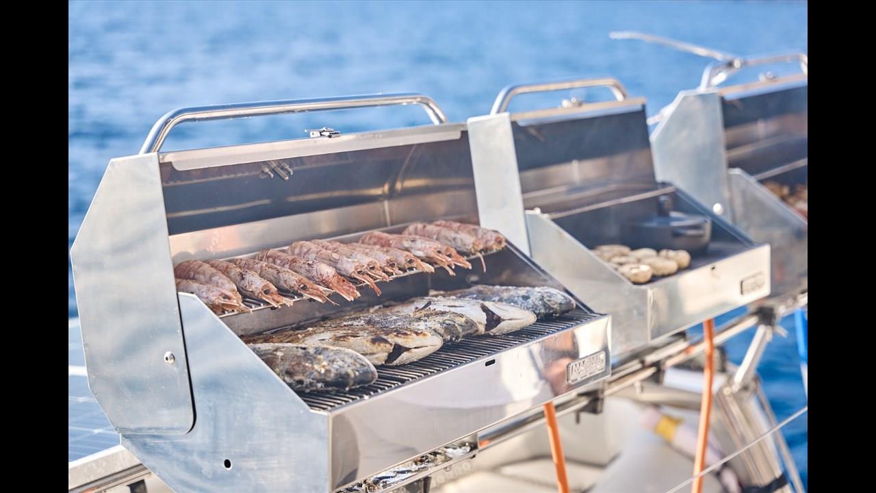 Both cruise options provide a delicious BBQ meal on board, with a choice between meat and fresh seafood, prepared with the finest local ingredients. Moreover, free Santorini wine, beers, and soft drinks are included in both options.