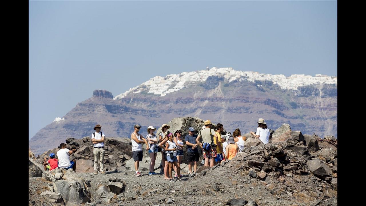 This unique experience will start by reaching the impressive volcano of Santorini! Our knowledgeable guide will lead you up to the top of the crater, giving you all the useful information about the creation of this impressive site, and welcoming you to feel the wild volcanic atmosphere all around! This hike takes up to 1,5 hours in steep terrain, so make sure that you wear a good pair of shoes, bring a hat for protection from the sun, as well as a bottle of water. Get ready to touch the hot stones and see the volcanic crater on the top of the rim, where smoke rises up! It is fascinating!