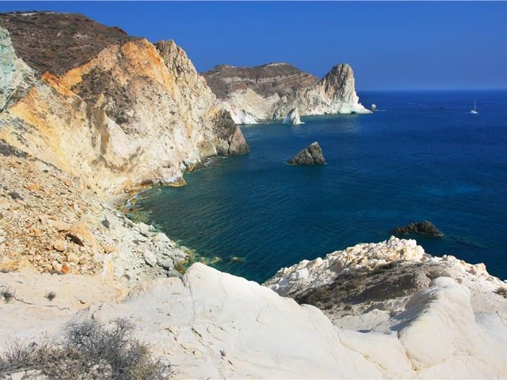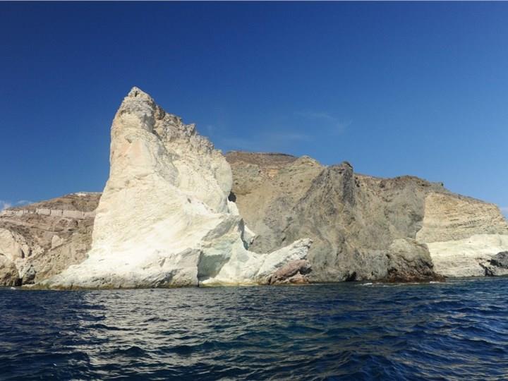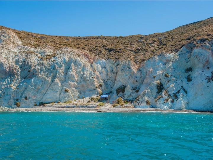 The sand on the beach is not white, as its name clearly indicates. It is a small cove with black pebbles and grey volcanic sand that contrasts with the white surroundings and this contrast is actually what makes it so special. The coast is shallow and the waters are crystal clear, very tempting for a refreshing swim!