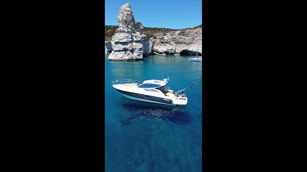 The journey kicks off at Vlychada Beach, where the yacht departs toward Santorini’s famed southern coastline, sailing past the dramatic Red beach of Akrotiri, known for its striking cliffs and vibrant waters. From there, the cruise continues past the White beach, where towering white volcanic cliffs offer a breathtaking view. Moreover, one of the most exciting parts of the tour is the visit to the Santorini Volcano and its surrounding hot springs, where you will cruise around the volcanic crater and have time to swim or snorkel. Additionally, somewhere in the sheltered caldera bay, the yacht will anchor for a relaxing onboard meal. Then, as the cruise continues through the caldera, you will stop at the charming Armeni Bay, where you can enjoy a swim in its crystal-clear waters. Further along, you will reach the picturesque Ammoudi Bay below Oia, which is perfect for stunning photos, or an adventurous cliff jump near the little church of St. Nicholas. The final stop is Therasia Island, a quiet and charming islet just across from Santorini, where you can take a final dip in the sea.