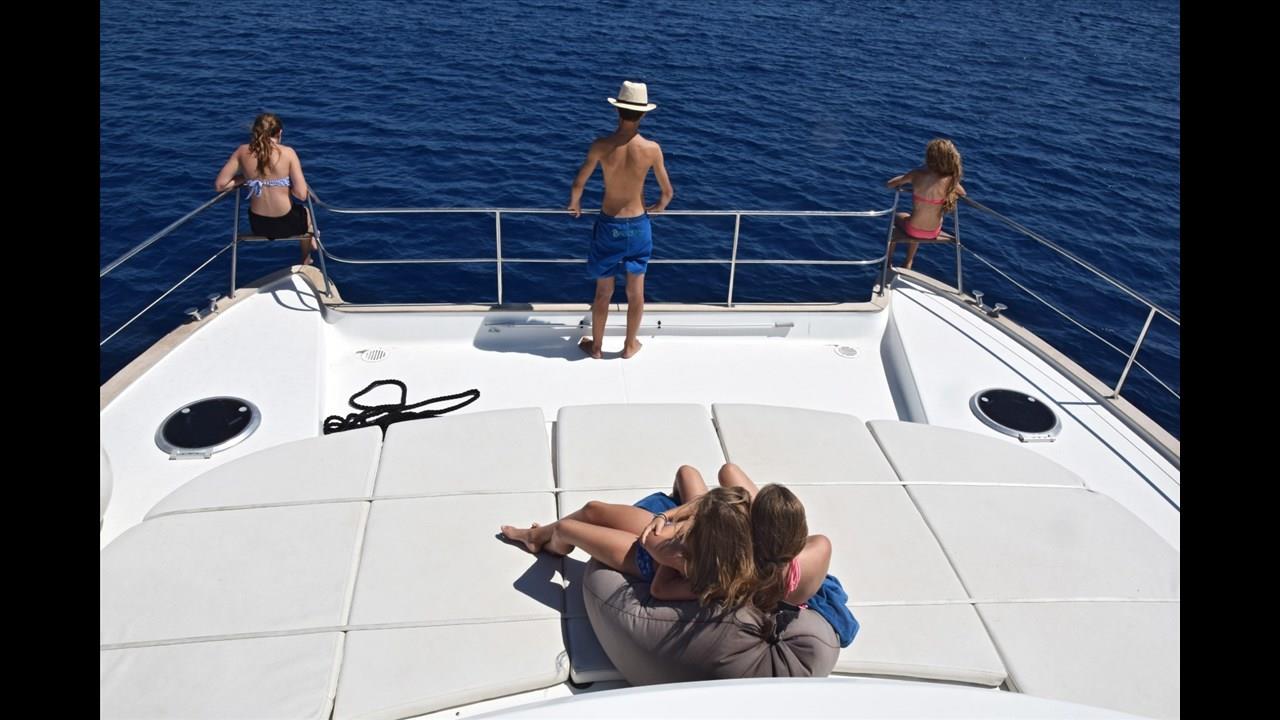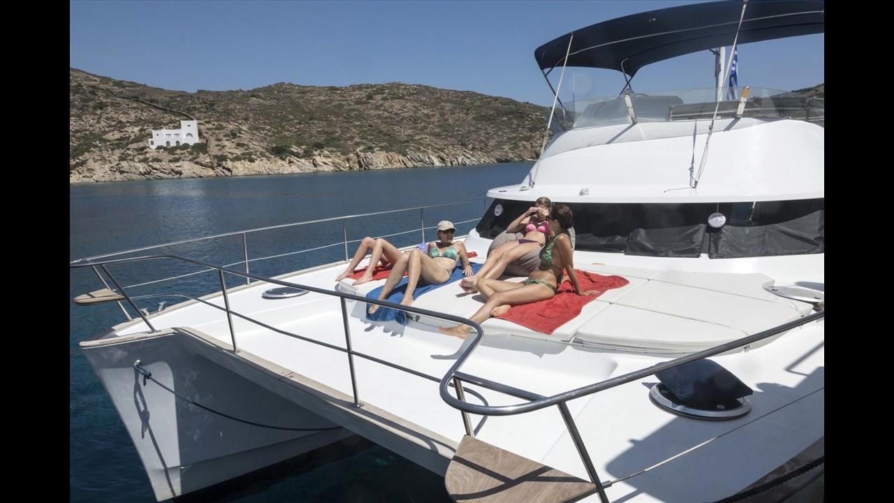 There are numerous things to do onboard - take delight in the catamaran ride and the amazing views of Santorini from the sea, sunbathe, and enjoy the meal the staff will prepare for you, or just relax with your drink on board!