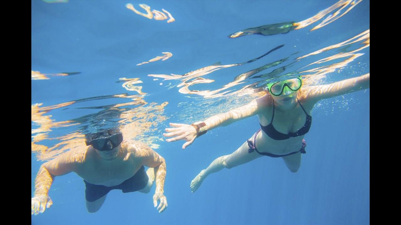 Absolutely! Greece is one of the safest countries to swim in. You will be glad to know that sharks in the Aegean Sea (usually from species such as dogfish) are harmless, sightings are extremely rare while attacks are unheard of! In addition, the waves are usually small, especially inside the Caldera where most boat cruises make stops for swimming. So, based on the above, if you enjoy swimming, snorkeling, or even diving... you are in the right place!