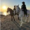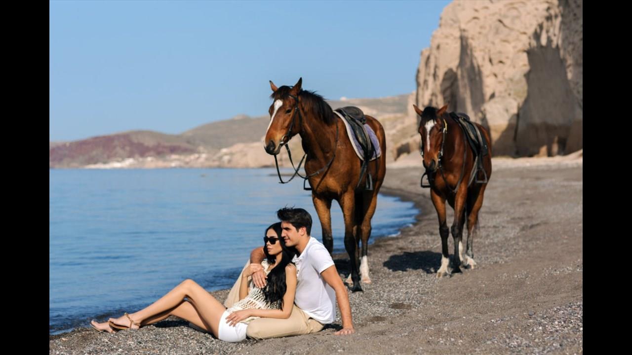 Your adventure begins at the stables on the hilltop of Vlychada with the friendly team guiding you on a magical Private ride. After a brief safety and riding instruction, you'll meet the horses and set off through Santorini's stunning landscape towards Eros Beach. Riding along the beach and its steep volcanic cliffs, you'll be rewarded with breathtaking views of the turquoise sea. Eros Beach is renowned for its tranquil setting, perfect to unwind in, while as you ride along, you will experience stunning scenery with high volcanic cliffs that will delight a photographer's eye. There will also be many opportunities to capture beautiful photos of yourself and your horse.