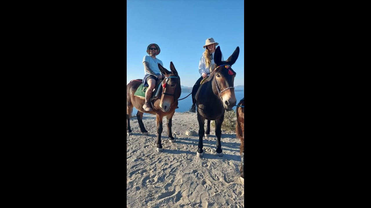 The riding trail will lead you to the stunning Caldera of Santorini! Follow the path and admire the astounding view of the Volcano on the opposite side and the Aegean Sea. The two volcanic islands of Palaia Kameni and Nea Kameni in the middle of the sea, as well as the panoramic view of the whole island, are unique spectacles that will leave you speechless! Get a different perspective of the Caldera villages from the south part of the island, marvel at the small white-colored houses on the top of the huge cliffs, and get ready to take the most amazing photos of your holidays on Santorini island!