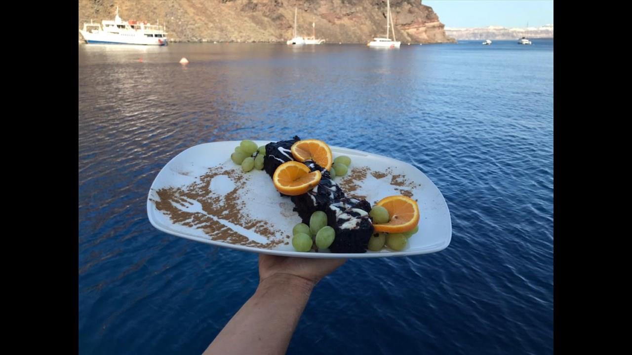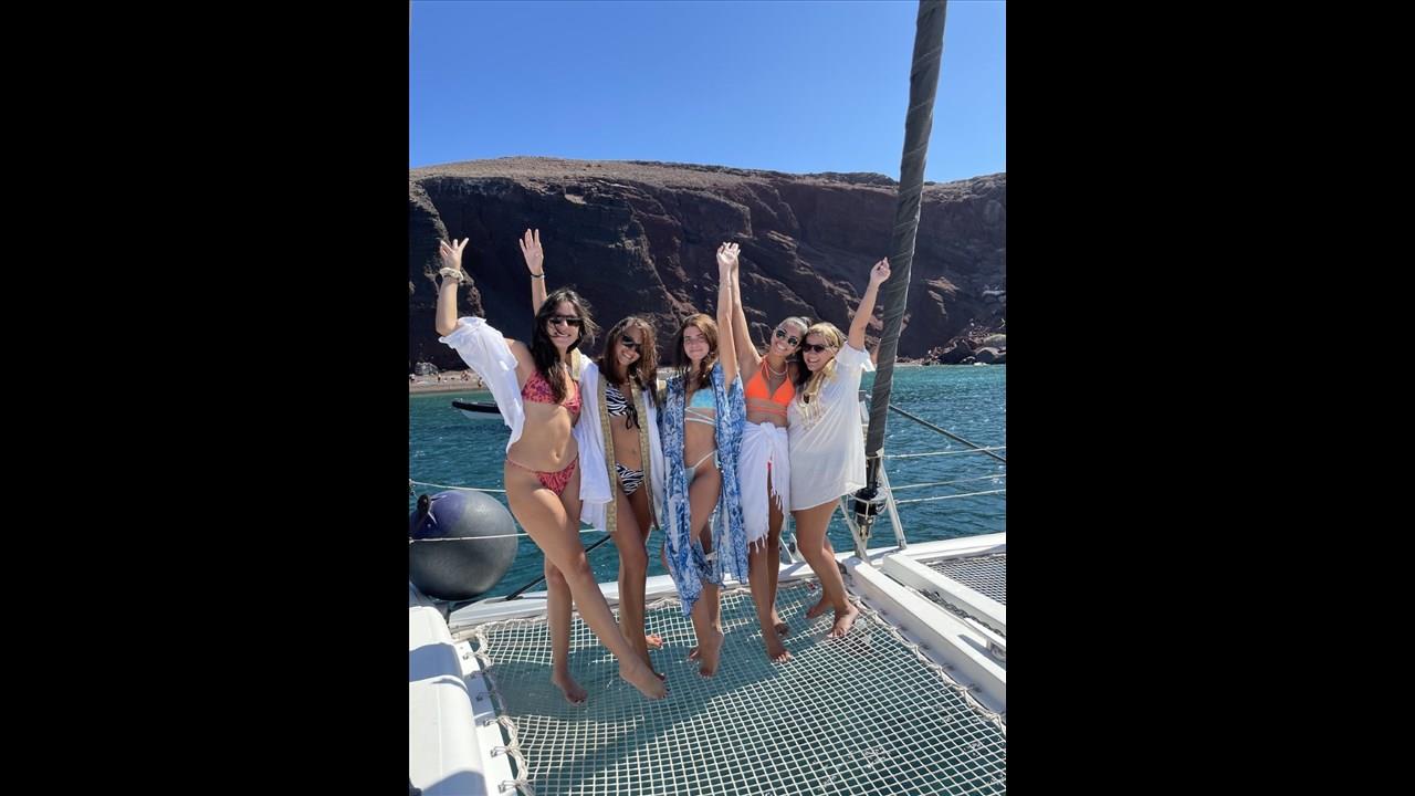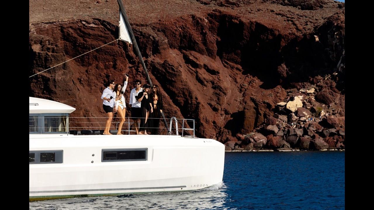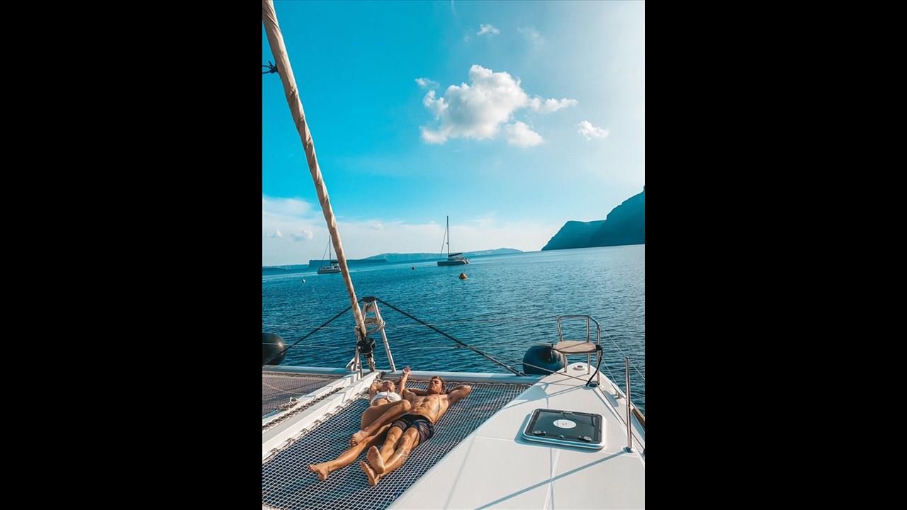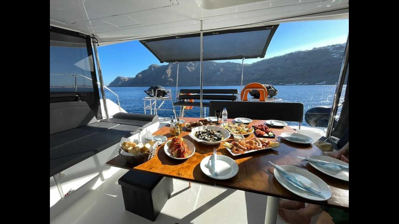 There are numerous things to do onboard - take delight in the catamaran ride and the amazing views of Santorini from the sea, sunbathe, and enjoy the meal the staff will prepare for you, or just relax with your drink on board!