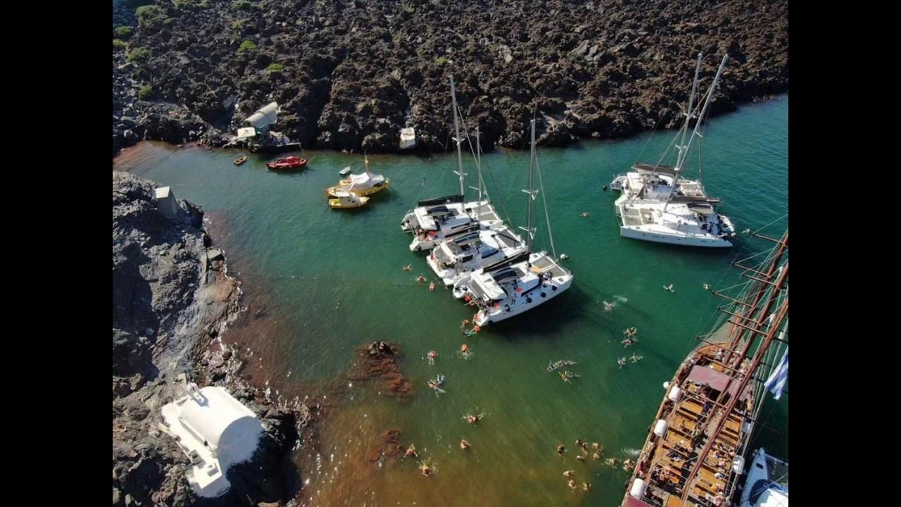 After convenient transportation from your hotel, you will reach the starting point of the cruise to embark on your mythical journey to places of unique beauty around the island. The hidden beaches, the imposing Volcano, the healing Hot Springs, beautiful landmarks, the view of picturesque villages on the Caldera, and small neighboring islands, are the remarkable sights that you will have the chance to witness aboard this Catamaran boat. You can choose between the 5-hour Day Cruise, which starts from Vlychada port and finishes at Ammoudi port, and the 5-hour Sunset Cruise, which starts from Ammoudi port and finishes at Vlychada port. Either choice guarantees beautiful moments at the sea!