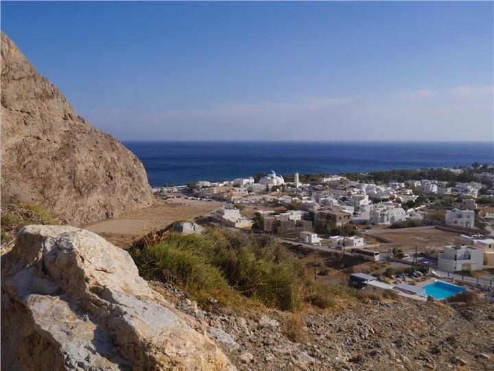 Akrotiri lies on the southwestern edge of Santorini and is a location of historical and natural beauty, as there, one can find the ancient Minoan ruins, an archaeological site of great importance. But beyond historical allure, the village of Akrotiri emits a tranquil charm and offers proximity to beautiful beaches. What is more, there, one may find traditional restaurants by the sea, a lighthouse offering great sunset views, and castle ruins of cultural importance, which are ideal for leisurely hikes with captivating views. Whether strolling through history, dining at a waterfront taverna, or simply taking in the quiet beauty of sunset at the Akrotiri Lighthouse, Akrotiri is a must-visit quiet destination for your Santorini trip.