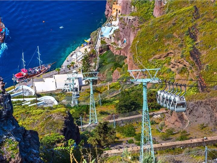 Fira, the capital of Santorini, is the most vibrant destination. Perched on the enormous cliffs of the caldera, it boasts breathtaking views of the Aegean Sea and the volcanic islands while also offering something to suit every taste. From diving into the history of the island in its museums, enjoying a cable car ride down to the island's Old Port, or just walking through its cobblestone streets, Fira has it all. During the day, its streets, filled with boutique shops, cafes, and restaurants, are full of people, while at night the town comes alive with its vivid nightlife, and the many cliffside bars and clubs. Additionally, it offers easy connections to other parts of the island, making it the perfect base for exploring the whole island.