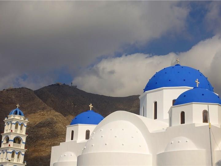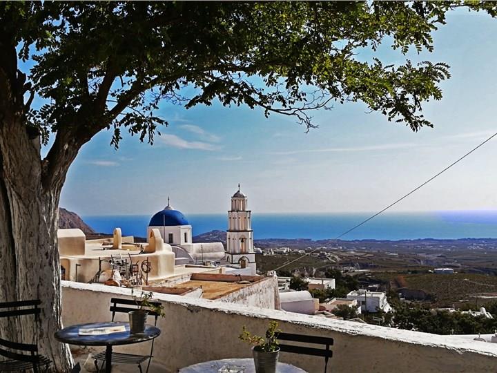 Firostefani is another charming cliffside village offering a great combination of serenity and spectacular views over the caldera. The village is a traditional display of Cycladic architecture, with whitewashed houses, cobblestone paths, and blue-domed churches that create a beautiful scenery. Unlike Fira and Oia, which are crowded, Firostefani is a quieter, more relaxed location, also hosting excellent restaurants and cozy hotels with a dreamy view. It is a very romantic and relaxing escape, and we could say a hidden treasure that promises peaceful moments.