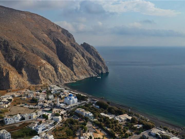 Perissa is another charming coastal village on the southeastern coast of Santorini, offering modern amenities and a relaxing atmosphere. The main asset of the village is the long Perissa Beach, stretching below the imposing Mesa Vouno Mountain, featuring crystal-clear waters and water sports facilities, as well as numerous inviting beachfront restaurants and bars. What is more, Ancient Thera ruins sit atop the mountain, offering the opportunity to visitors to delve into Santorini’s history and marvel at beautiful views. Therefore, Perissa village is a choice that appeals to all, offering a quiet, yet lively retreat.