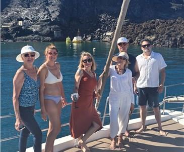 There are numerous things to do onboard - take delight in the catamaran ride and the amazing views of Santorini from the sea, sunbathe, and enjoy the meal the staff will prepare for you, or just relax with your drink on board!