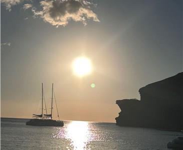 There are numerous things to do onboard - take delight in the catamaran ride and the amazing views of Santorini from the sea, sunbathe, and enjoy the meal the staff will prepare for you, or just relax with your drink on board!