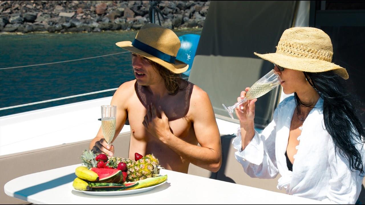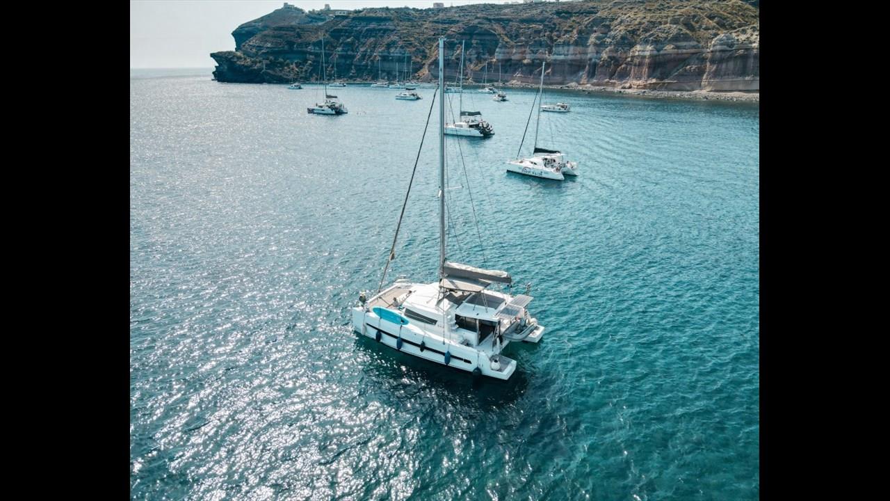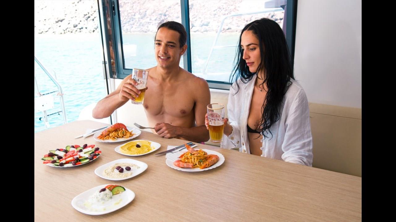 There are numerous things to do onboard - take delight in the catamaran ride and the amazing views of Santorini from the sea, sunbathe, and enjoy the meal the staff will prepare for you, or just relax with your drink on board!