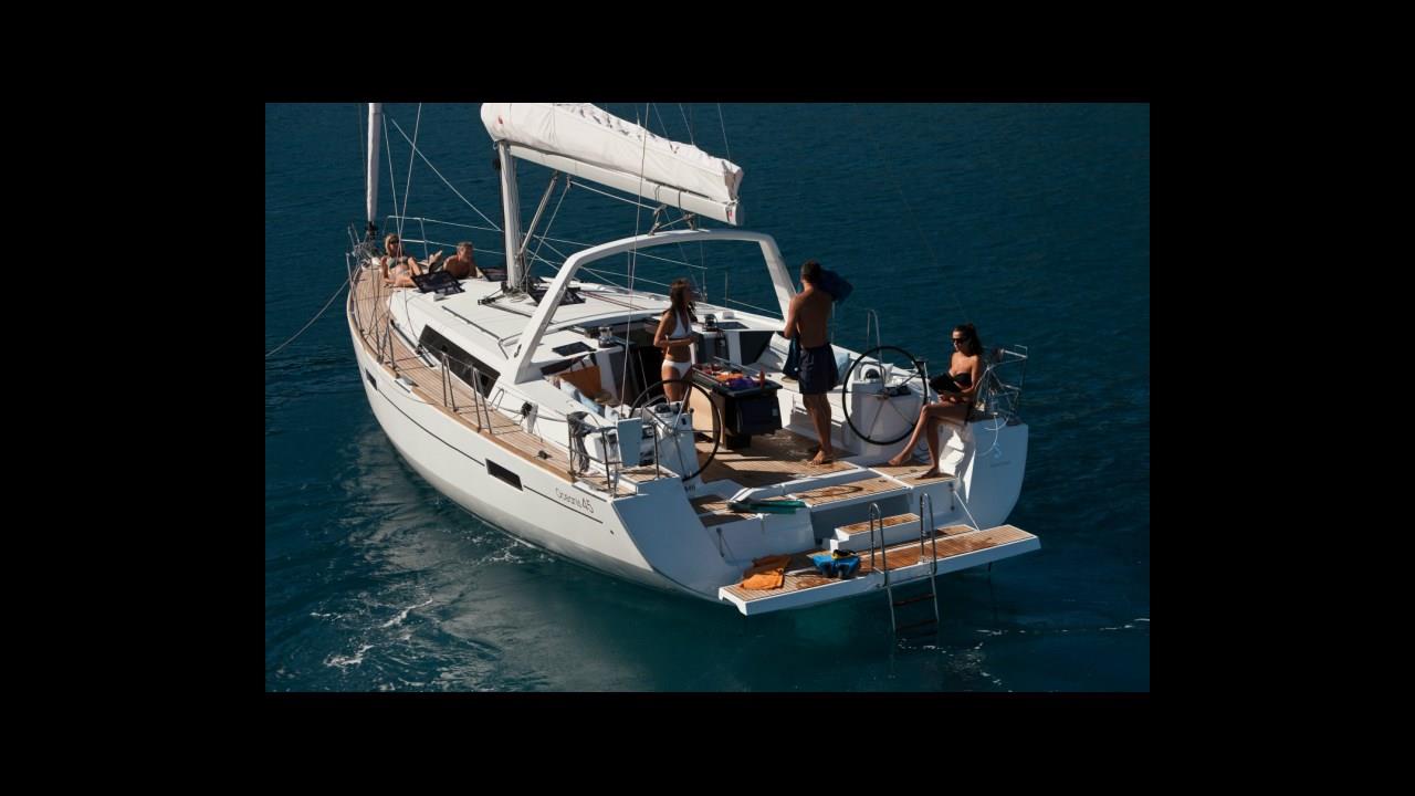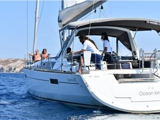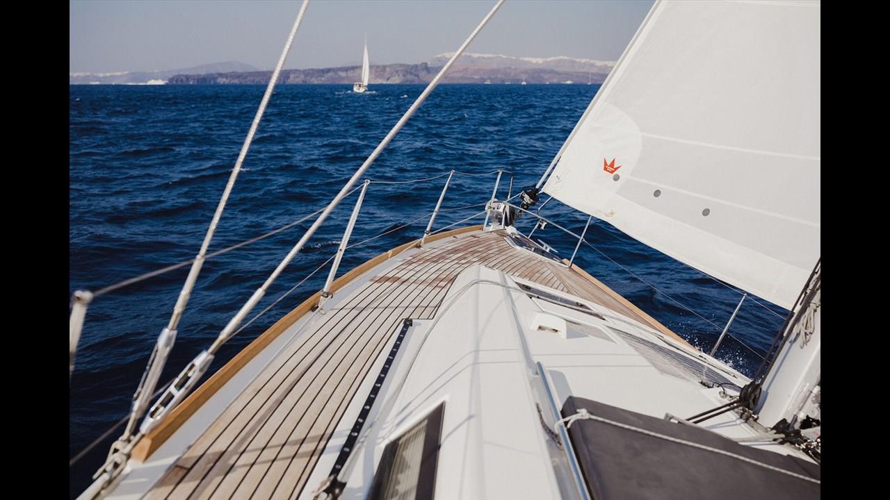 The Sailing Oceanis 45 - Ocean King offers a one-of-a-kind sailing experience in Santorini that will remain engraved in your heart and mind for years to come. This balanced sailing yacht features a sturdy structure with a spacious deck. You can enjoy the experience of living on board in style and comfort. Passengers are served a tasty BBQ meal on board along with free unlimited wine, beer, and soft drinks. If you want to explore the island of Santorini on a luxurious yacht or sail across the nearby islands as a way to celebrate your wedding proposal or honeymoon on a full-day trip, the Sailing Oceanis 45 – Ocean King is the best option.