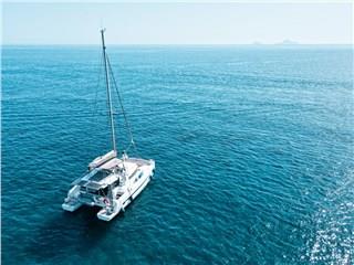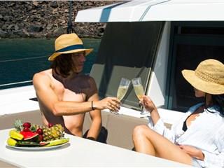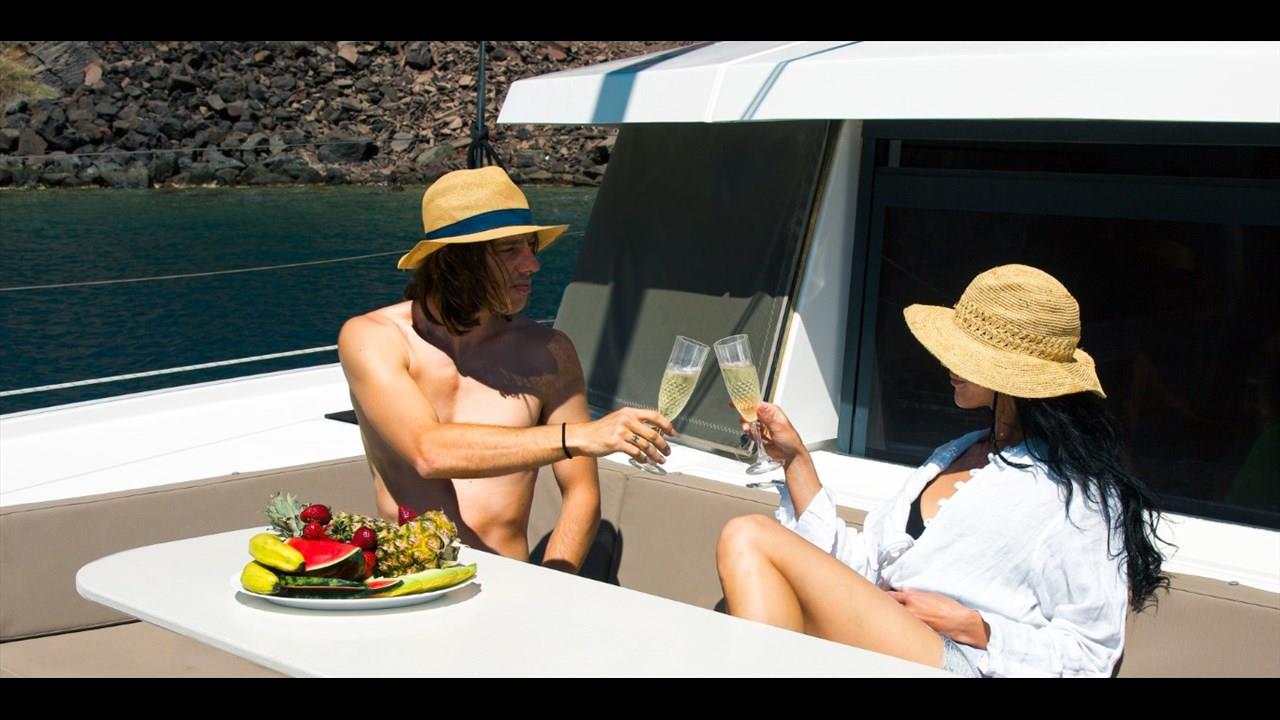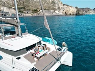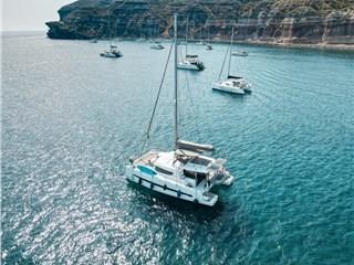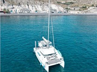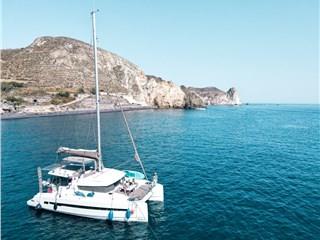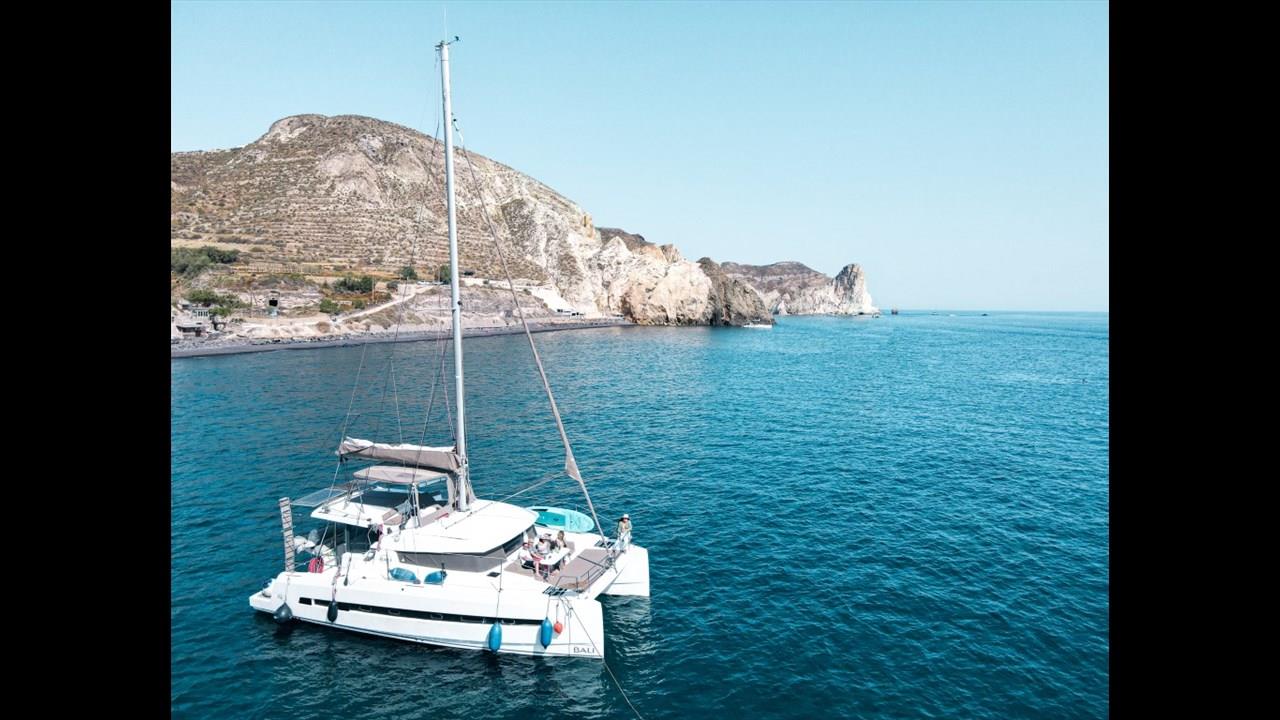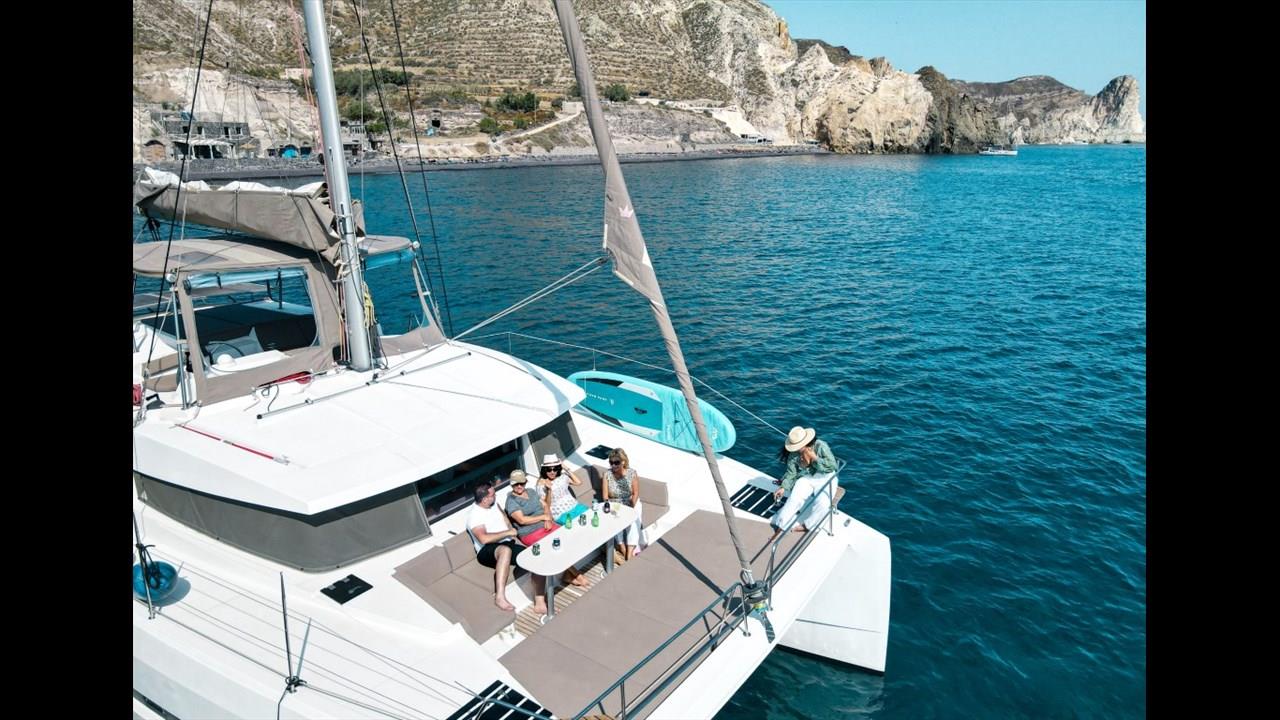 Innovation, relaxation, and comfort are combined in the Catamaran Bali 4.1, offering a unique cruising experience around the island of Santorini.