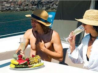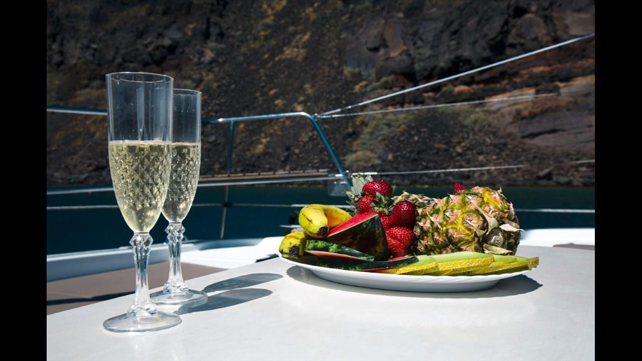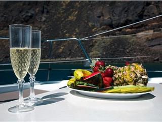 The catamaran can accommodate up to 20 guests. During the cruise, a delicious lunch or dinner will be provided to the passengers, along with unlimited local wine, beers, and beverages.