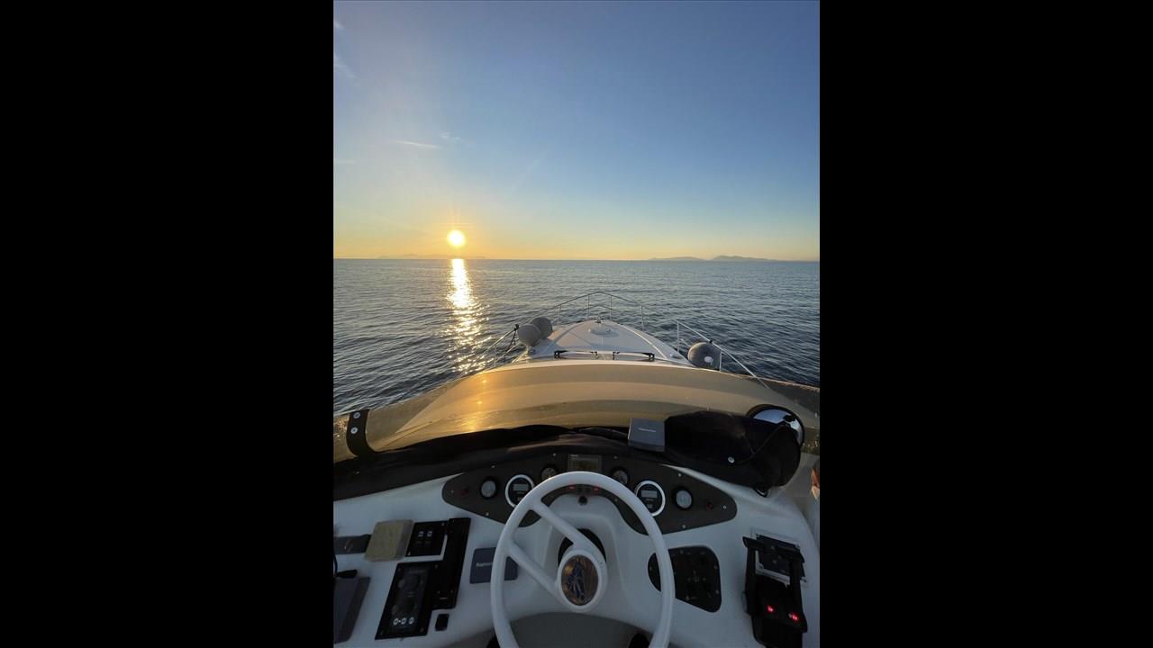 Luxury, comfort, and exceptional service are combined in the 13 meters (42ft) long Motor Yacht Azimut 42 Flybridge, carefully designed to fit and cover all the passengers' needs in a Private Yacht Cruise around the island of Santorini.