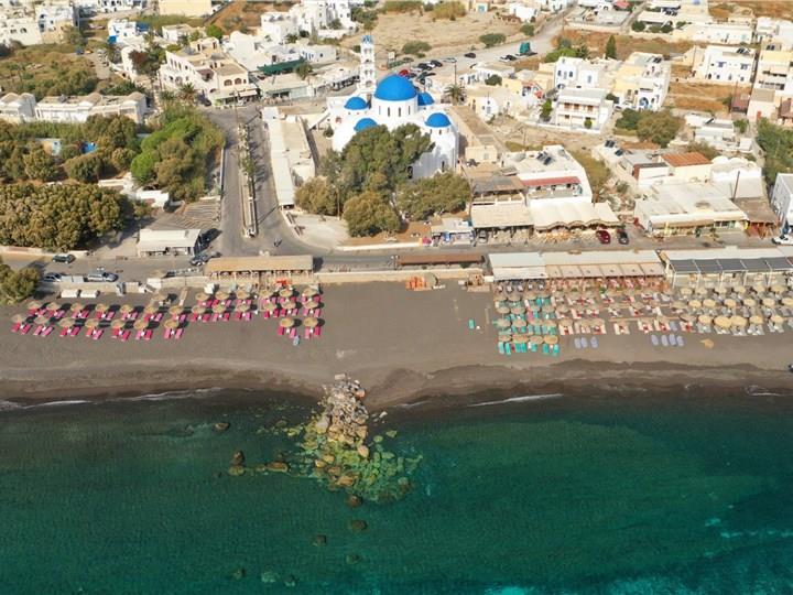 The vivid Kamari is a seaside village on the southeastern coast of Santorini and is ideal for those who wish to spend their holidays by the beach. Its famous wide black sand beach is well-organized, featuring deck chairs, umbrellas, and lifeguards, offering a relaxing and safe environment. There is also a lively promenade by the shore ideal for nice strolls, lined with shops, restaurants, taverns, and cafes, which create a traditional atmosphere. Modern amenities and easy accessibility attract tourists and make it an ideal location for families and visitors who wish to experience the charm of Santorini, away from the crowds.